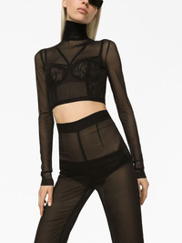 semi-sheer chiffon flared trousers Highlights - Black - Stretch-silk - Semi-sheer construction - High waist - Flared - Concealed rear zip fastening - Extra-long length Made in Italy Composition Silk 92%, Elastane 8% SIZE & FIT Measurement INSIDE LEG 35.03 in(89 cm) HIPS 32.28 in(82 cm) WAIST 24.4 in(62 cm) Washing instructions Read Manufacturer Guidelines
