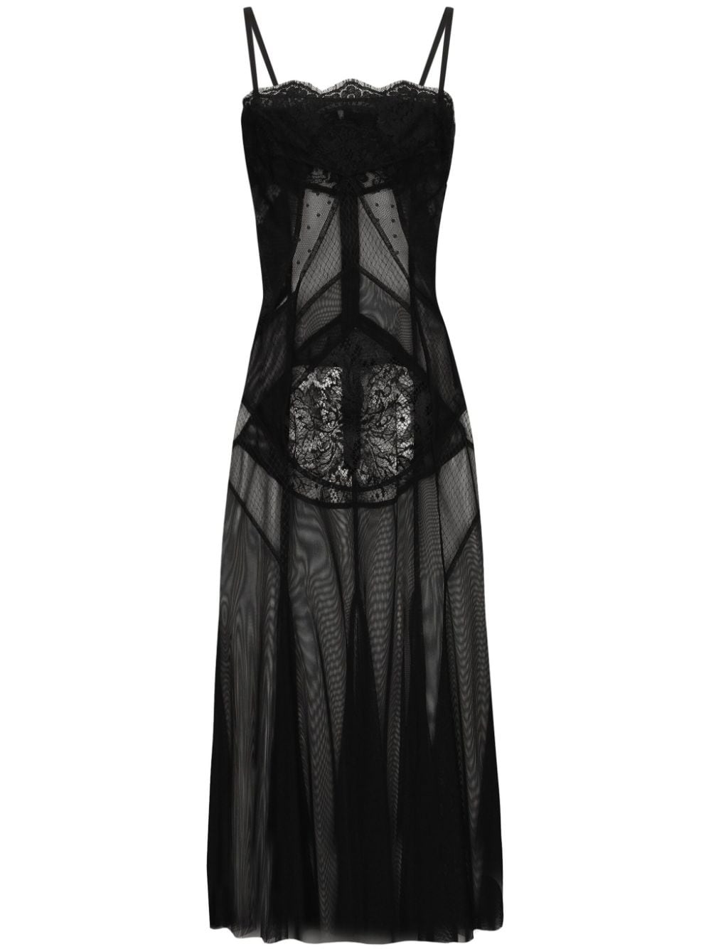 Tulle, mesh and lace calf-length slip dress