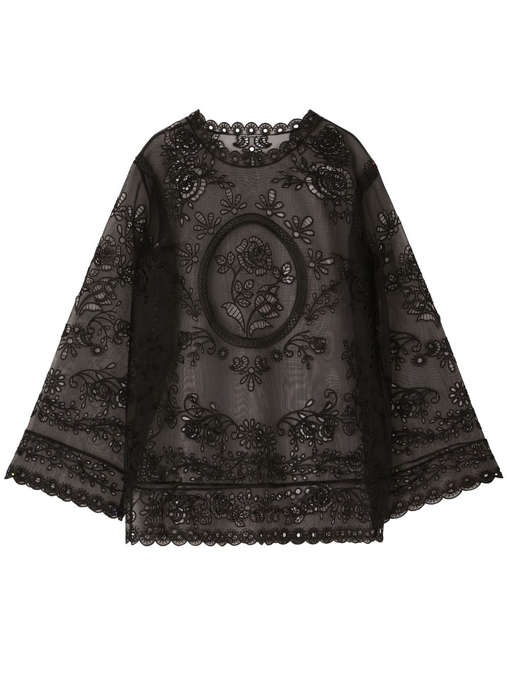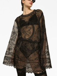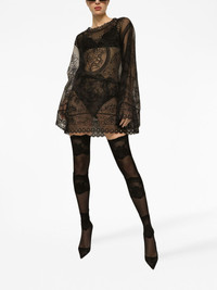 semi-sheer lace dress Dolce & Gabbana creates a sense of effortless opulence on this long-sleeve dress, through the use of semi-sheer material and an embroidered design in a monochromatic hue. Highlights - Black - Semi-sheer construction - Lace panelling - Embroidered design - Round neck - Long sleeves Made in Italy Composition Nylon 90%, Polyester 10%