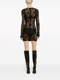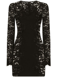 semi-sheer lace minidress Dolce & Gabbana celebrates its glamorous style with predominantly black looks inspired by lingerie. A testament to that, this black minidress is crafted from lace with strategically placed semi-sheer panels. Highlights - Black - Semi-sheer construction - Lace detailing - Round neck - Long sleeves - Straight hem - Thigh-length - Concealed rear hook and zip fastening Made In Italy Composition Cotton 48%, Viscose 27%, Polyamide 23%, Elastane 2% Washing instructions Read Manufacturer Guidelines