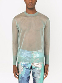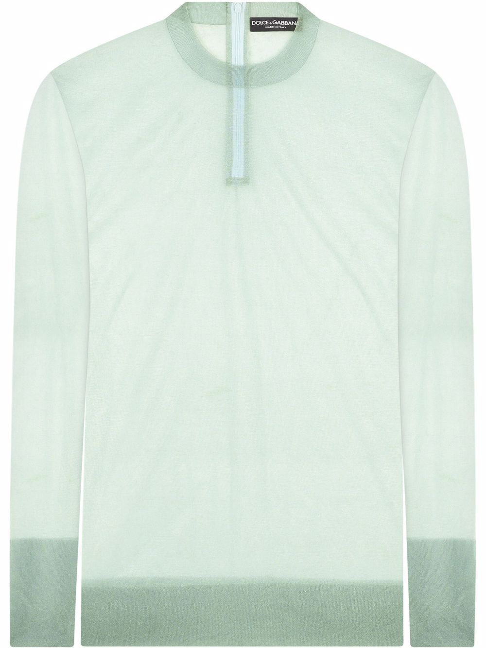 semi-sheer long-sleeve top water green semi-sheer construction round neck concealed rear zip fastening long sleeves straight hem Made in Italy Composition Polyester 100%