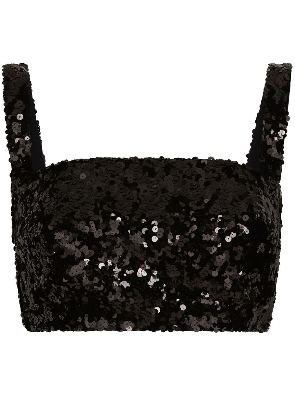 sequin-embellished cropped top Highlights - Black - Stretch-design - Sequin embellishment - Thin shoulder straps - Cropped - Square open back - Square neck - Concealed rear fastening - Sleeveless Imported Composition Polyamide 94%, Elastane 6% SIZE & FIT Measurement LENGTH 6.1 in(15.5 cm) BUST 28.34 in(72 cm) Washing instructions Read Manufacturer Guidelines