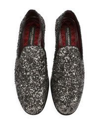 sequin-embellished leather slippers Highlights - Silver-tone - Calf leather - Sequin embellishment - Grosgrain ribbon trim - Round toe - Slip-on style - Flat leather sole Made in Italy Composition Lining: Goat Skin 91%, Rayon 6%, Silk 3% Outer: Polyester 80%, Rayon 20% Sole: Calf Leather 100% SIZE & FIT Measurement HEEL 0.78 in(2 cm) Sole height 0.39 in(1 cm)