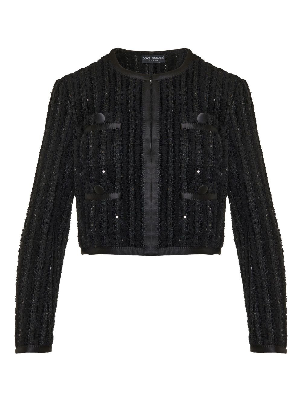 Short single-breasted tweed jacket with micro-sequin embellishment