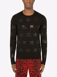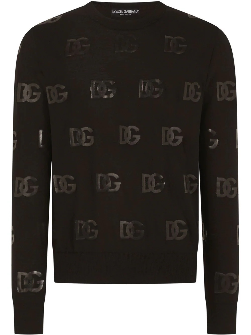 sequin-logo jumper black virgin wool-blend sequin logo detail crew neck long sleeves straight hem ribbed edge Made in Italy Composition Virgin Wool 79%, Polyurethane 16%, Polyester 5%