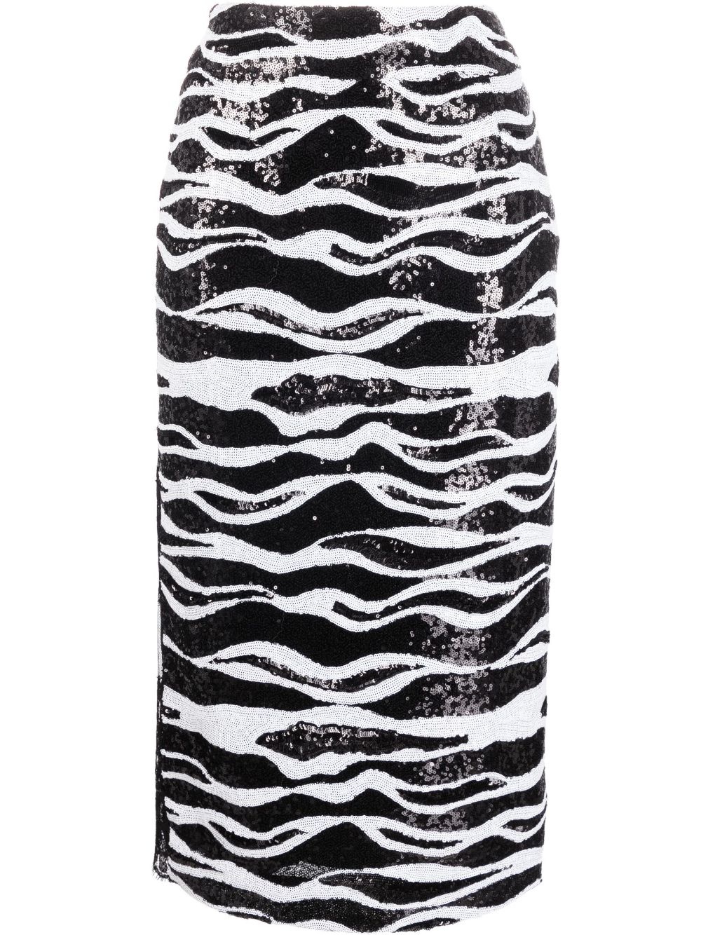 sequin panelled skirt Reflecting the brand's love for bold patterns, Dolce & Gabbana presents this skirt as part of its SS22 offer. Cut to a pencil silhouette, this skirt features a sequin zebra pattern on the front, whilst the rear offers a romantic lace panelling. Made in Italy Composition Lining: Silk 94%, Elastane 6% Outer: Polyester 62%, Cotton 38% SIZE & FIT Model measurements Height 5 ft 11 in(1.8 m) Bust/Chest 31.49 in(80 cm) Hips 35.82 in(91 cm) Waist 24.8 in(63 cm) Measurement HIPS 33.85 in(86 cm) LENGTH 30.7 in(78 cm) WAIST 25.98 in(66 cm) Washing instructions Dry Clean Only