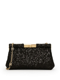 sequined clutch bag Highlights - Black - Sequin design - Detachable chain-link shoulder strap - Twist-lock fastening - Main compartment - Internal slip pocket Made in Italy Composition Outer: Polyester 90%, Lambskin 10% Lining: Viscose 68%, Silk 32% SIZE & FIT Measurement DEPTH 1.77 in(4.5 cm) HEIGHT 5.51 in(14 cm) WIDTH 9.05 in(23 cm)