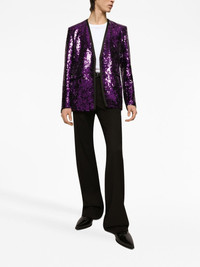 sequined single-breasted blazer Highlights - Purple - Sequin embellishment - Satin trim - V-neck - Front button fastening - Long sleeves - Buttoned cuffs - Chest welt pocket - Two side patch pockets - Central rear vent - Straight hem Made in Italy Composition Sequin 100%, Satin 100%