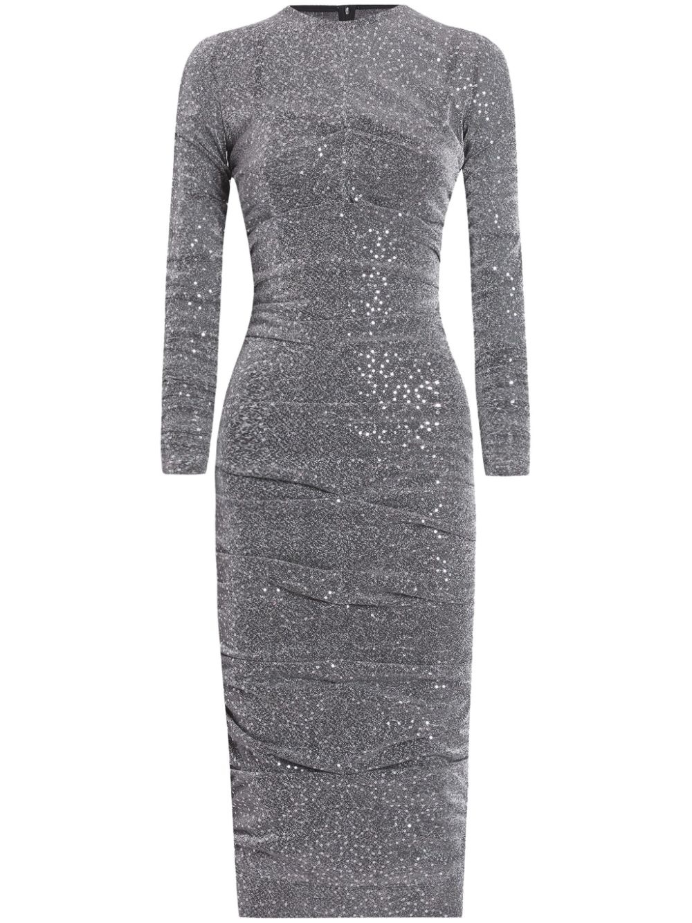 sequinned midi dress Highlights - Ash grey - Sequin design - Mid-length - Concealed rear zip fastening - Round neck - Glitter and ruched detailing - Long sleeves Made in Italy Composition Lining: Silk 91%, Spandex/Elastane 9% Outer: Polyester 45%, Metallized Polyester 37%, Polyamide 18%