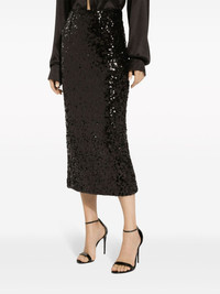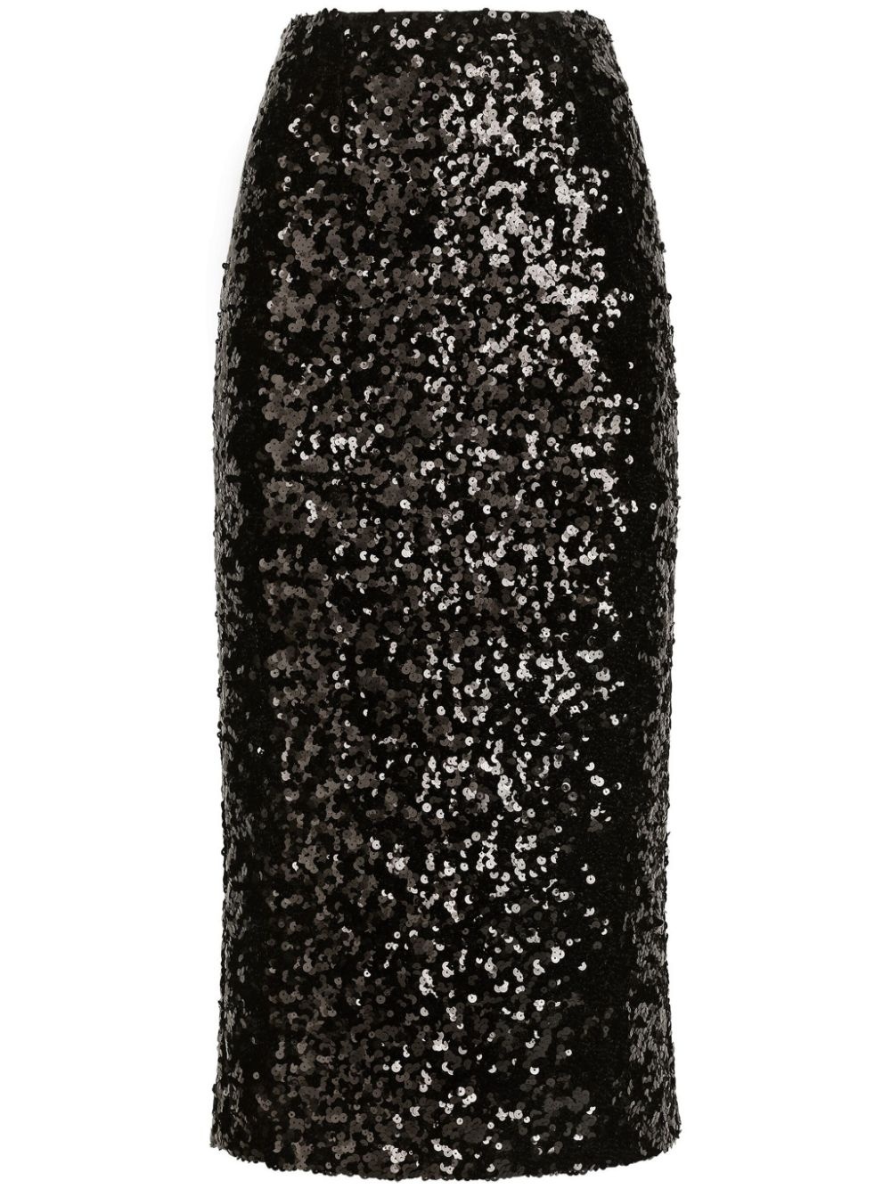 sequinned pencil midi skirt Dolce & Gabbana enriches the demure design of this skirt with sparkling embellishment. Cut to a mid-length pencil silhouette, it is saturated with scores of black sequins, evoking a glittering, sumptuous look inspired by the glamourous Golden Age of Hollywood. Highlights - Black - Sequin design - Pencil silhouette - Low-rise - Concealed rear hook and zip fastening - Rear slit - Satin lining - Mid-length - Straight hem Imported Composition Polyamide 94%, Spandex/Elastane 6% SIZE & FIT Measurement HIPS 33.46 in(85 cm) LENGTH 28.34 in(72 cm) WAIST 28.74 in(73 cm)