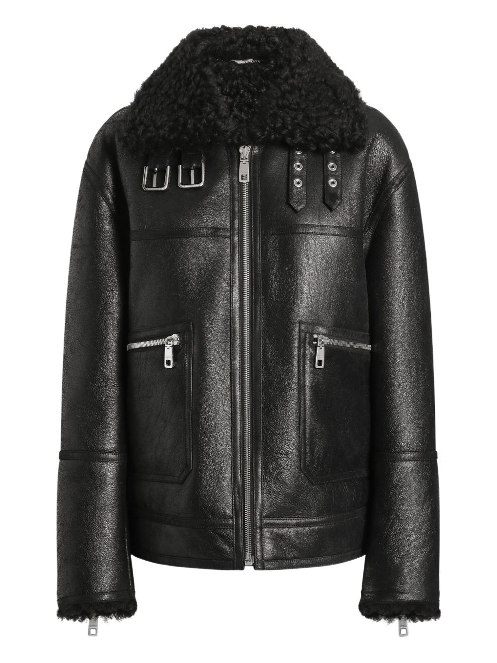 shearling-collar leather jacket Highlights - Black - Front zip fastening - Contrasting shearling collar - Drop shoulder - Zip cuffs Made in Italy Composition Lambskin 100% Washing instructions Specialist Cleaning