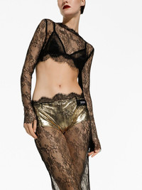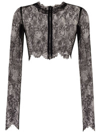 sheer lace cropped top Highlights - Black - Sheer lace panelling - Round neck - Long sleeves - High-low hem - Cropped Made in Italy Composition Nylon 55%, Rayon 45% SIZE & FIT Measurement LENGTH 14.56 in(37 cm) Washing instructions Read Manufacturer Guidelines