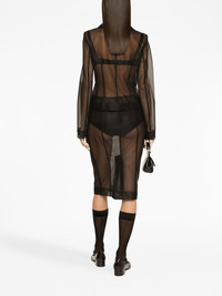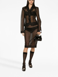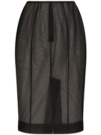 sheer pencil skirt Dolce & Gabbana gives the classic pencil skirt a twist by giving it a daring sheer construction. The black-hued garment sits high on the waist and extends into a slim-fitting silhouette. Highlights - Black - Pencil design - Sheer finish - High waist - Concealed rear zip fastening - Central rear vent - Mid-length Made in Italy Composition Nylon 100%