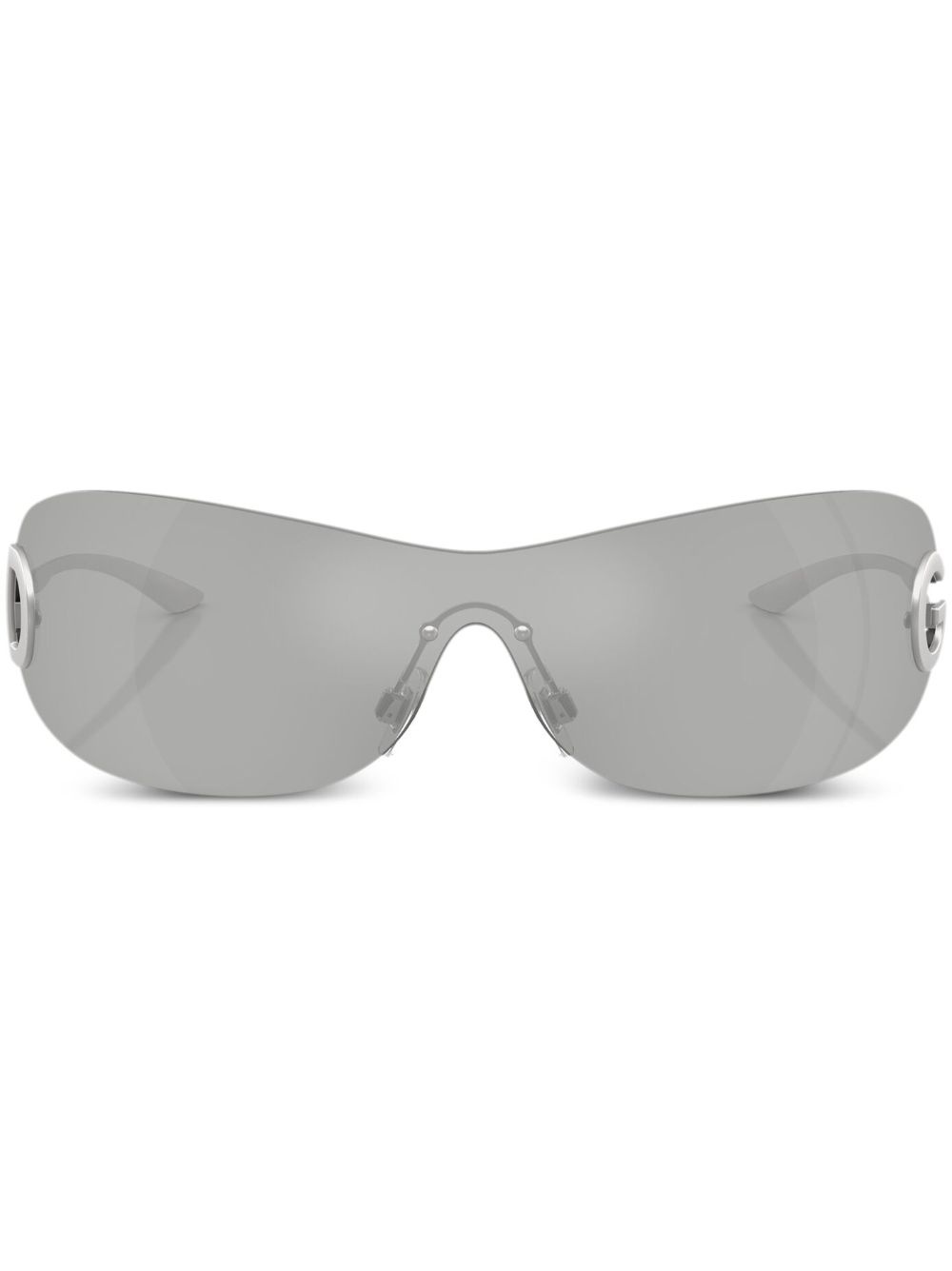 shield-frame sunglasses Dolce & Gabbana is the dream: a luxury brand that is distinguished by its stylistic originality combined with the superior sartorial content of its creations. A brand whose essence lies in its contrasting features. Highlights - Silver-tone matte - Metal - Shield frame - Tinted lenses - Nose pads - Straight arms - Curved tips - These glasses come with a protective case. Made in Italy Composition Metal 100%