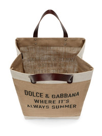 Shopping logo-print tote bag Highlights - Sand beige - Jute - Logo print to the front - Text print - Two top handles - Open top - Main compartment Made in Italy Composition Outer: Jute 80%, Cotton 10%, Calf Leather 10% Lining: Jute 100%
