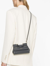KIM DOLCE&GABBANA small Sicily handbag Dolce & Gabbana's iconic Sicily bag is a tribute to one-half of the design duo's native Italian region. This compact version is crafted from grey patent leather and adorned with a silver-tone logo plaque. Highlights - Charcoal grey - Calf leather - Polished finish - Palladium-plated hardware - Logo plaque - Main compartment - Single top handle - Detachable shoulder strap - Foldover top with magnetic fastening - Internal logo patch - Internal logo stamp - Leopard print lining Made in Italy Composition Outer: Patent Calf Leather 100% SIZE & FIT Model measurements Height 5 ft 9 in(1.75 m) Bust/Chest 31.49 in(80 cm) Hips 34.05 in(86.5 cm) Waist 24.21 in(61.5 cm) Measurement DEPTH 1.96 in(5 cm) HANDLE 3.14 in(8 cm) HEIGHT 3.93 in(10 cm) STRAP 23.22 in(59 cm) WIDTH 7.87 in(20 cm)