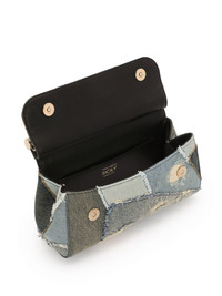 Sicily denim patchwork cross body bag Highlights - Blue/multicolour - Calf leather - Calfskin-cotton blend - Denim patchwork design - Charm embellishment detailing - Single rolled top handle - Adjustable detachable shoulder strap - Chain-link shoulder strap - Foldover top with magnetic fastening - Main compartment - Internal slip pocket - Internal logo stamp Made in Italy Composition Outer: Cotton 75%, CALFSKIN 25% Lining: CALFSKIN 100% SIZE & FIT Measurement DEPTH 3.54 in(9 cm) HEIGHT 6.69 in(17 cm) WIDTH 9.84 in(25 cm)