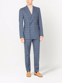 Sicily-fit double-breasted checked suit This double-breasted suit from Dolce & Gabbana features the Italian house's Sicily fit, a flattering contemporary slim cut. The piece showcases a plaid check pattern whose seventies-inspired aesthetic is brought to modern-day thanks to the inclusion of pastel-hued thin stripes. Made in Italy Composition Lining: Rayon 60%, Acetate 40% Outer: Virgin Wool 100%