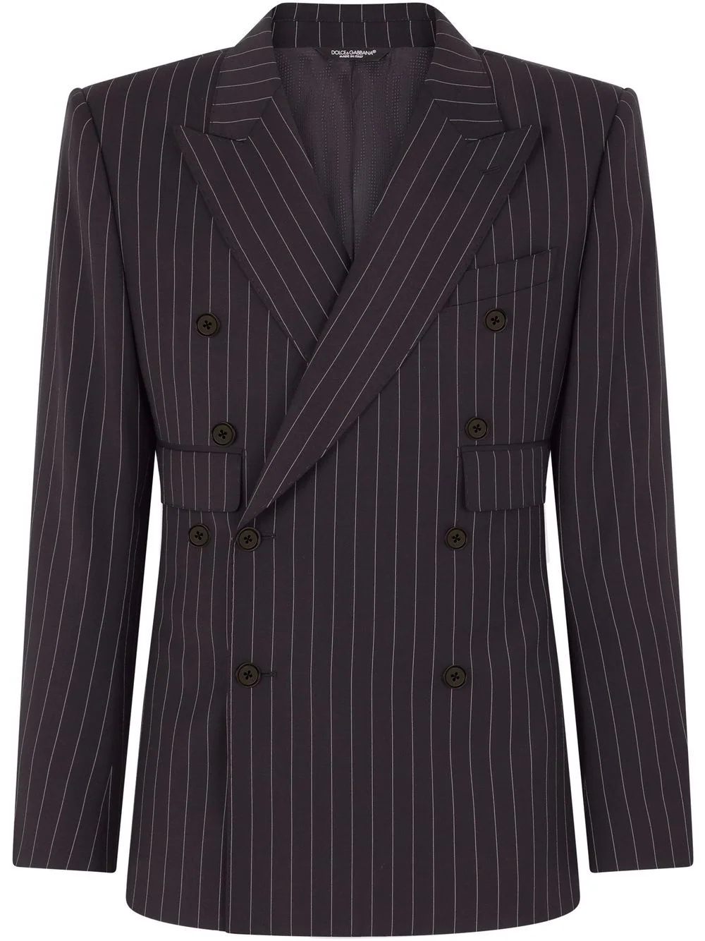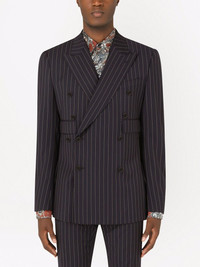 double-breasted pinstripe wool suit This double-breasted suit from Dolce & Gabbana features the Italian house's Sicily fit, a flattering contemporary slim cut. The piece showcases a pinstripe pattern that adds a heritage feel to the ensemble. Highlights - Black wool blend sicily-fit double-breasted pinstripe suit from dolce & gabbana featuring pinstripe pattern, peak lapels, double-breasted button fastening, shoulder pads, long sleeves, buttoned cuffs, chest welt pocket, two side flap pockets, english rear vents, front button and zip fastening, belt loops, two side slit pockets, two rear button-fastening jetted pockets, pressed crease and sicily fit. Made in Italy Composition Outer: Polyester 54%, Wool 44%, Elastane 2% Lining: Rayon 100%