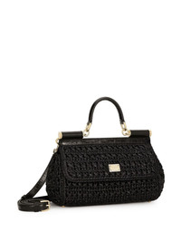 Sicily interwoven mini bag Highlights - Black - Calf leather - Interwoven design - Detachable chain-link shoulder strap - Single top handle - Clasp fastening - Main compartment Made in Italy Composition Outer: Rayon 70%, Calf Leather 30% SIZE & FIT Measurement DEPTH 3.54 in(9 cm) HEIGHT 6.69 in(17 cm) WIDTH 9.84 in(25 cm)