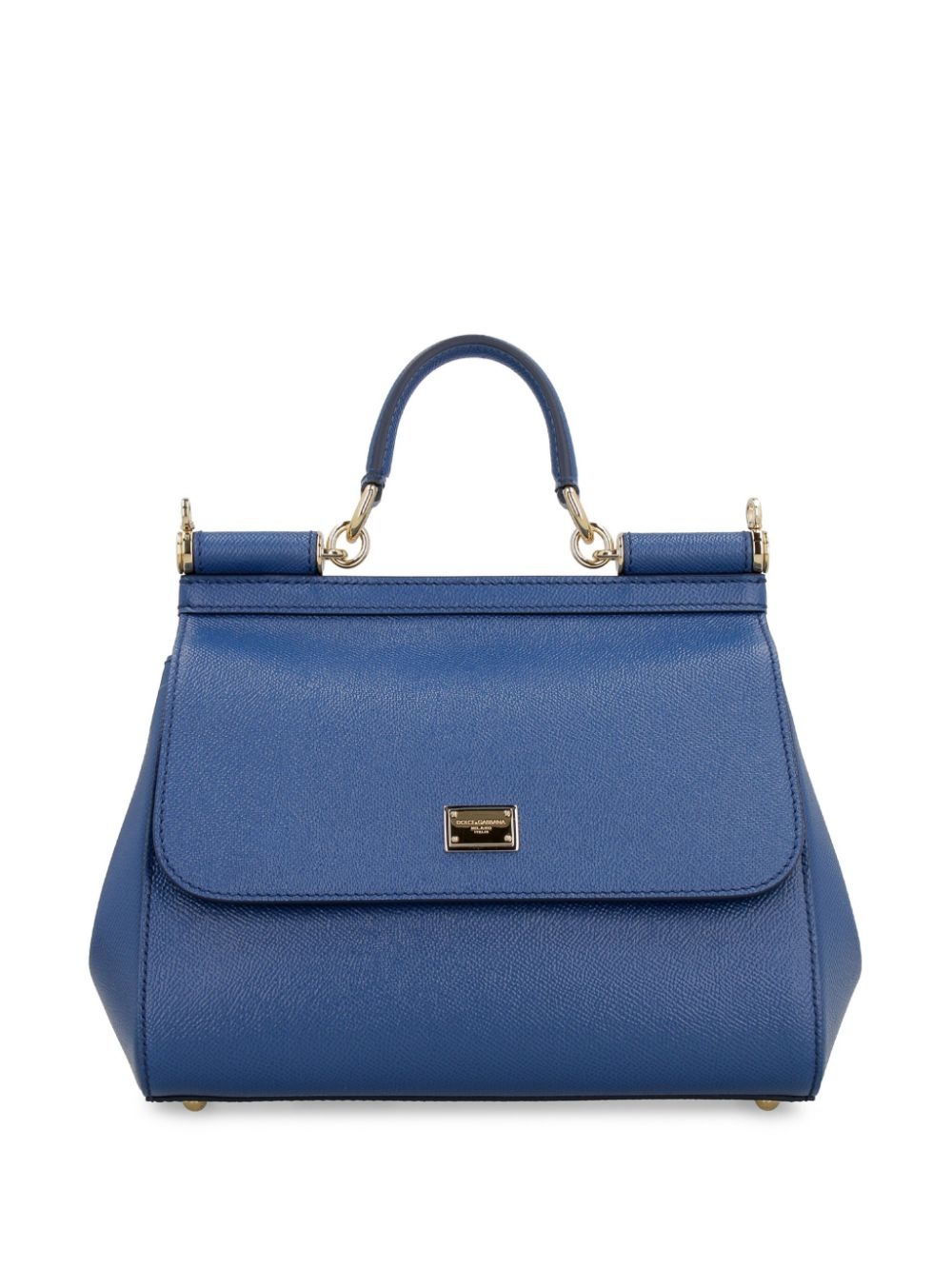 large Sicily tote bag Highlights - Blue - Calf leather - Grained texture - Logo plaque - Gold-tone hardware - Single top handle - Adjustable detachable shoulder strap - Front flap closure - Concealed magnetic fastening - Main compartment - Internal zip-fastening pocket - Internal slip pocket - This piece comes complete with a protective dust bag. Made in Italy Composition Outer: Calf Leather 100% Lining: Calf Leather 100% SIZE & FIT Measurement WIDTH 9.84 in(25 cm) HEIGHT 8.26 in(21 cm) DEPTH 4.33 in(11 cm) HANDLE 3.14 in(8 cm) STRAP 22.44 in(57 cm)