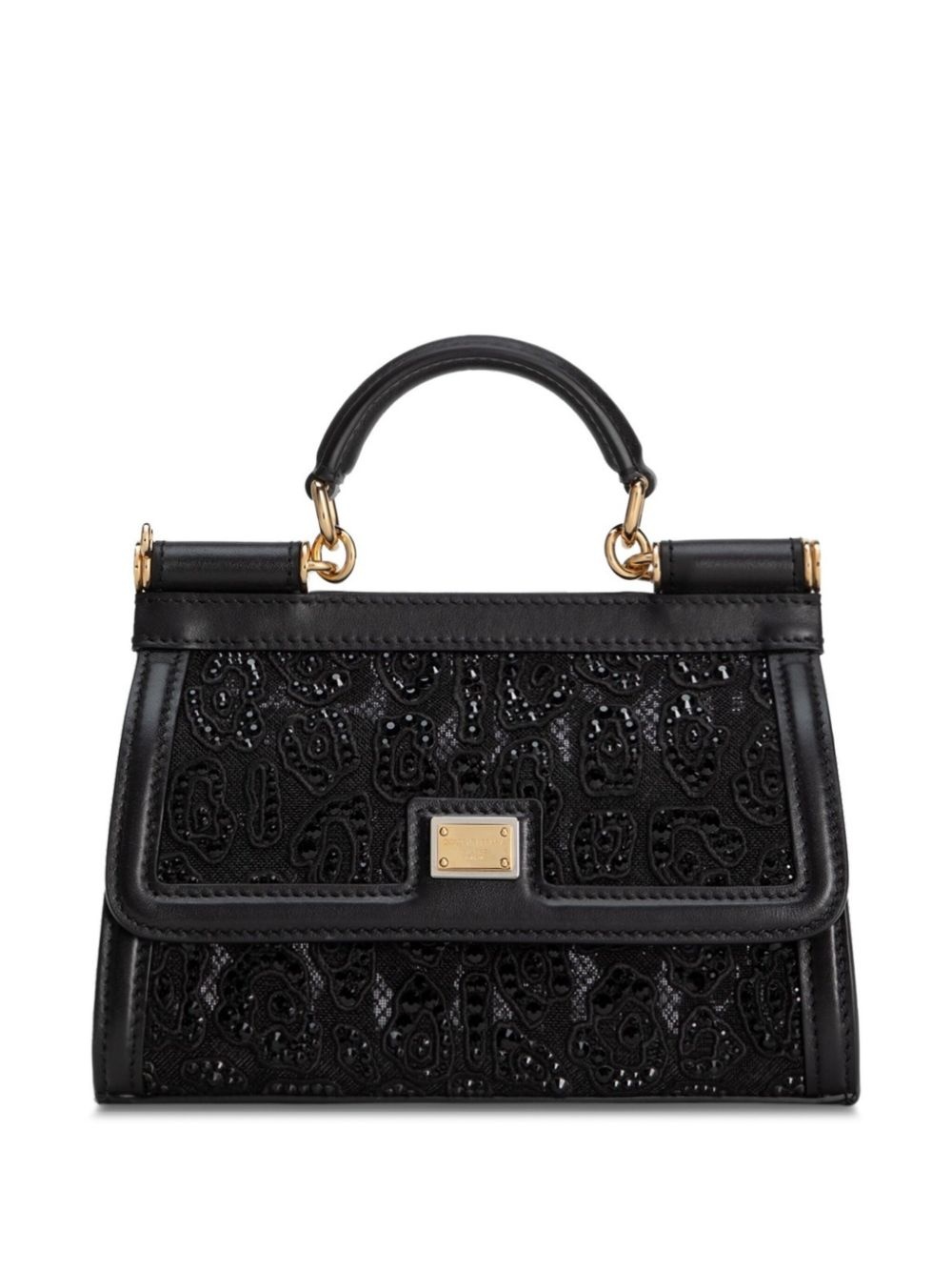Sicily tote bag Highlights - Black - Foldover top with magnetic fastening - Single rolled top handle - Adjustable detachable shoulder strap - Semi-sheer construction Made in Italy Composition Outer: glass 100%, Fabric 100%, Calf Leather 100%