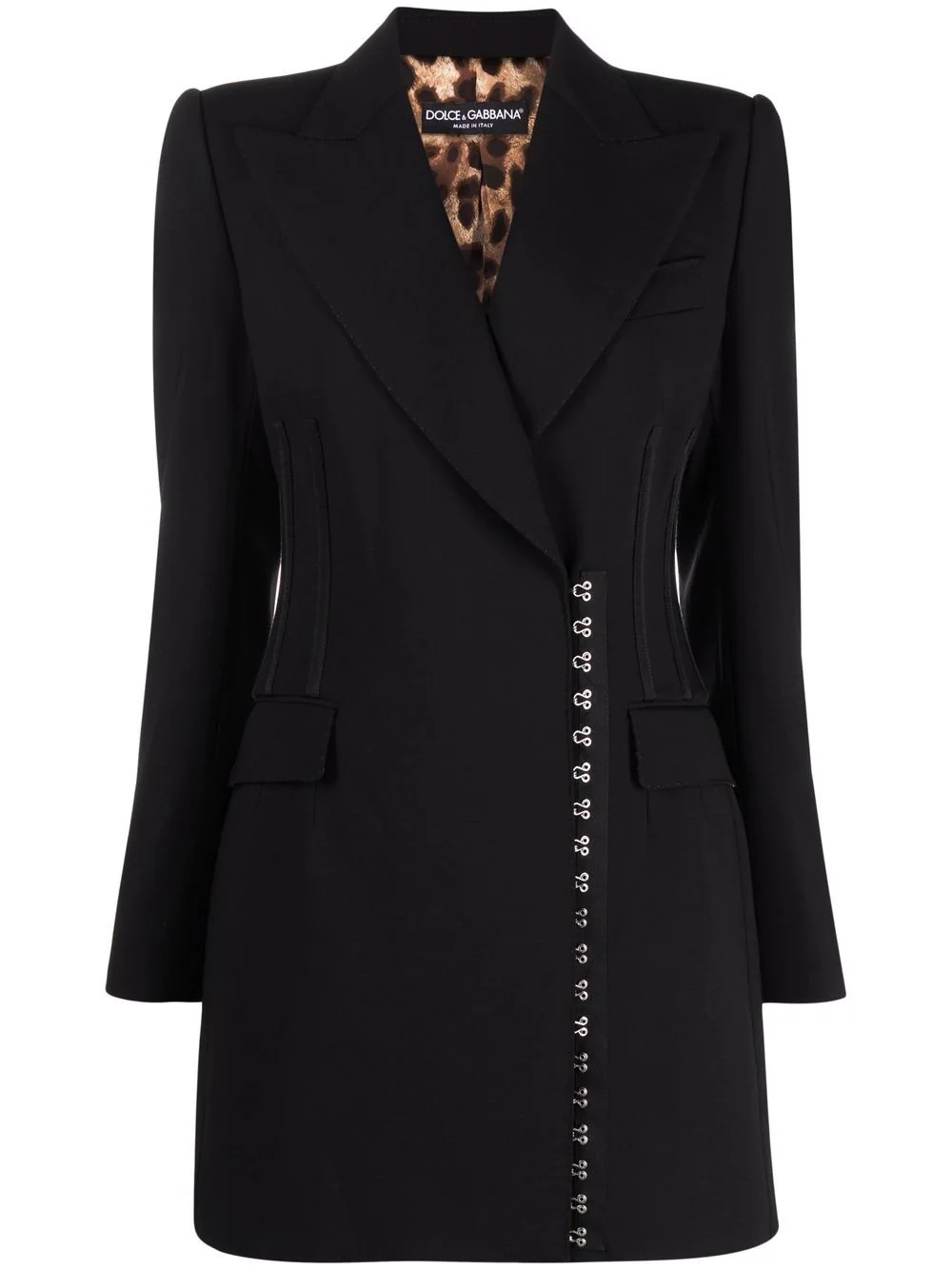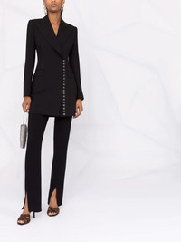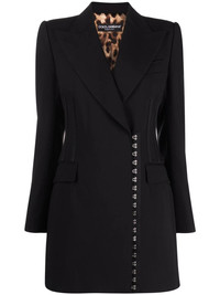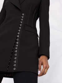 side-fastening virgin wool coat black virgin wool/goat fur-wool blend peak lapels side hook and eye fastening two front flap pockets straight hem mid-length Made in Italy Composition Outer: Virgin Wool 99%, Viscose 50%, Wool 40%, Goat Fur 10%, Spandex/Elastane 1% Lining: Polyester 97%, Spandex/Elastane 3% SIZE & FIT Model measurements Height 5 ft 11 in(1.8 m) Bust/Chest 31.49 in(80 cm) Hips 35.82 in(91 cm) Waist 24.8 in(63 cm) FittingInformation This piece fits true to size. We recommend you get your regular size Designed for a loose fit with a close fit at the waist Made with a mid-weight stretch fabric Washing instructions Dry Clean Only