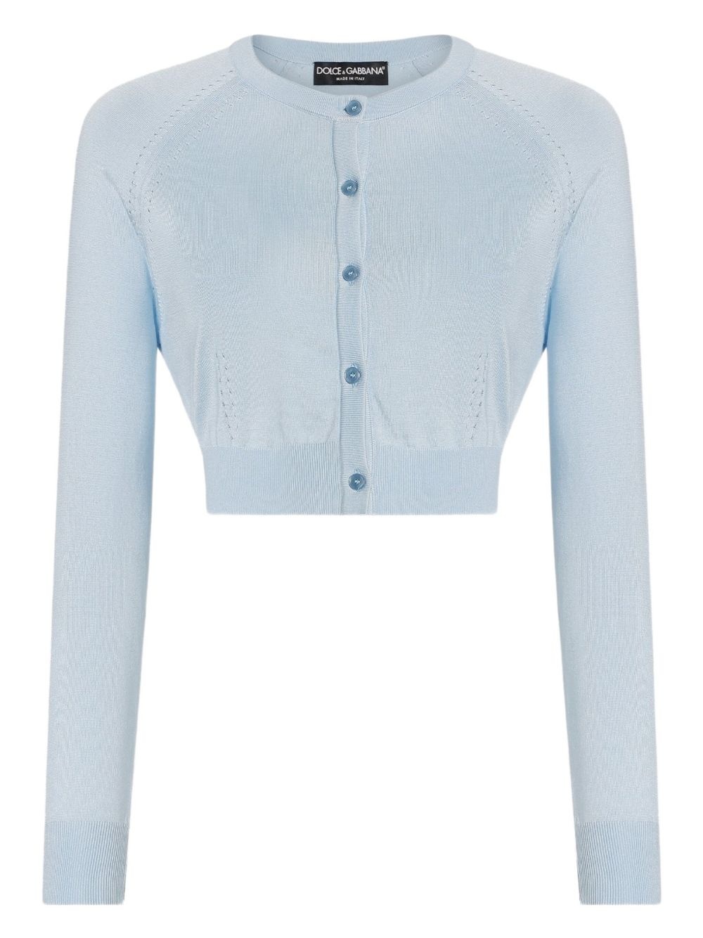 silk-blend cardigan Highlights - Baby blue - Front button fastening - Crew neck - Long sleeves - Ribbed cuffs and hem Made in Italy Composition Silk 97%, Polyamide 3%