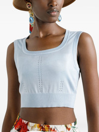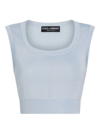 silk-blend top Highlights - Baby blue - Square neck - Sleeveless - Ribbed hem - Cropped Made in Italy Composition Silk 97%, Polyamide 3%