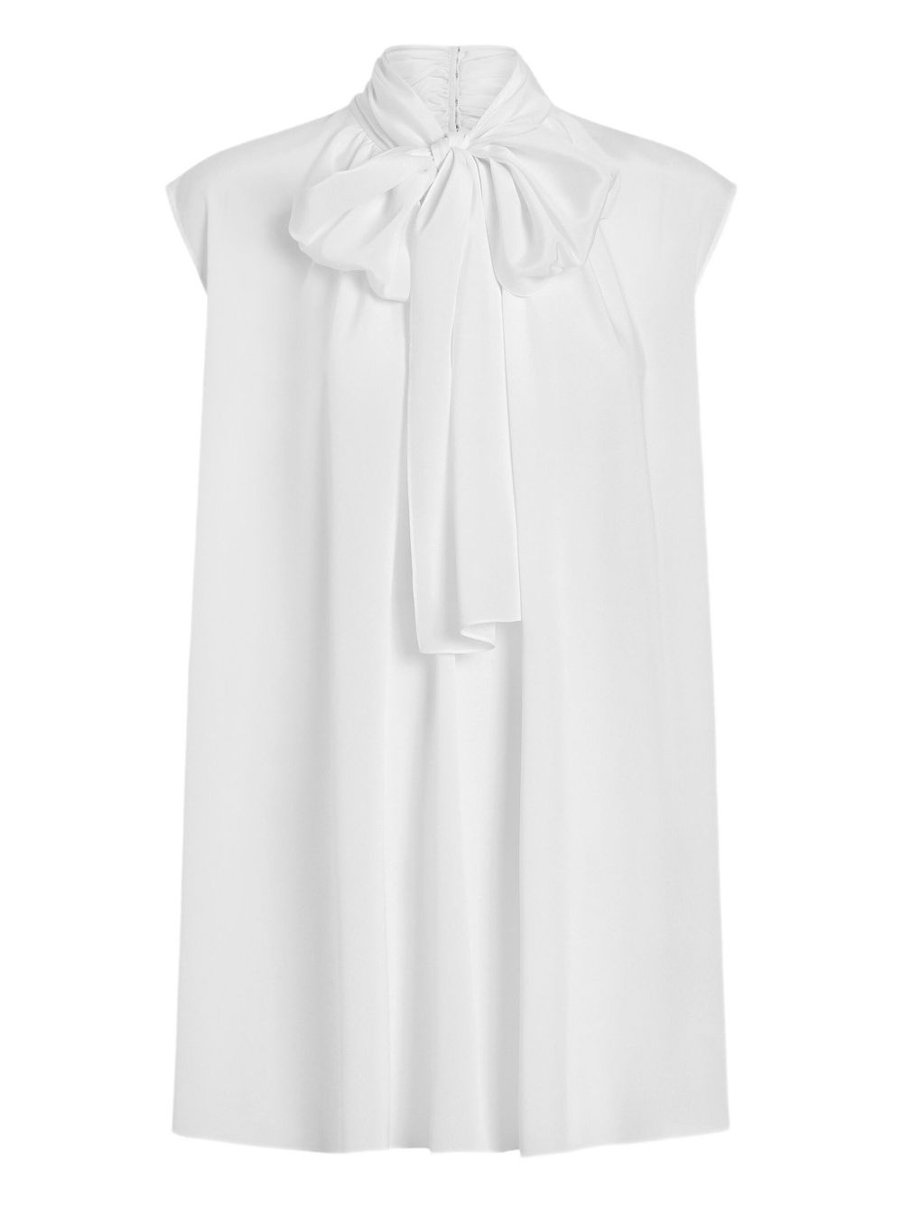 DNA silk blouse Highlights - White - Rear zip fastening - Front tie fastening - Sleeveless - Straight hem Made in Italy Composition Silk 92%, Elastane 8% Washing instructions Read Manufacturer Guidelines