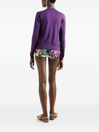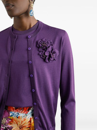 silk cardigan Highlights - Violet purple - Front button fastening - Crew neck - Long sleeves - Floral applique Made in Italy Composition Silk 100% Washing instructions Read Manufacturer Guidelines