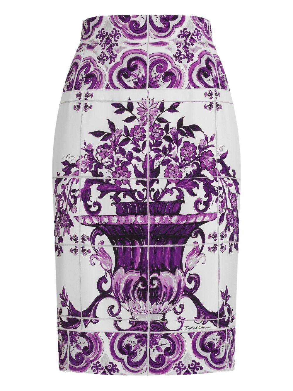 Majolica-print fitted skirt