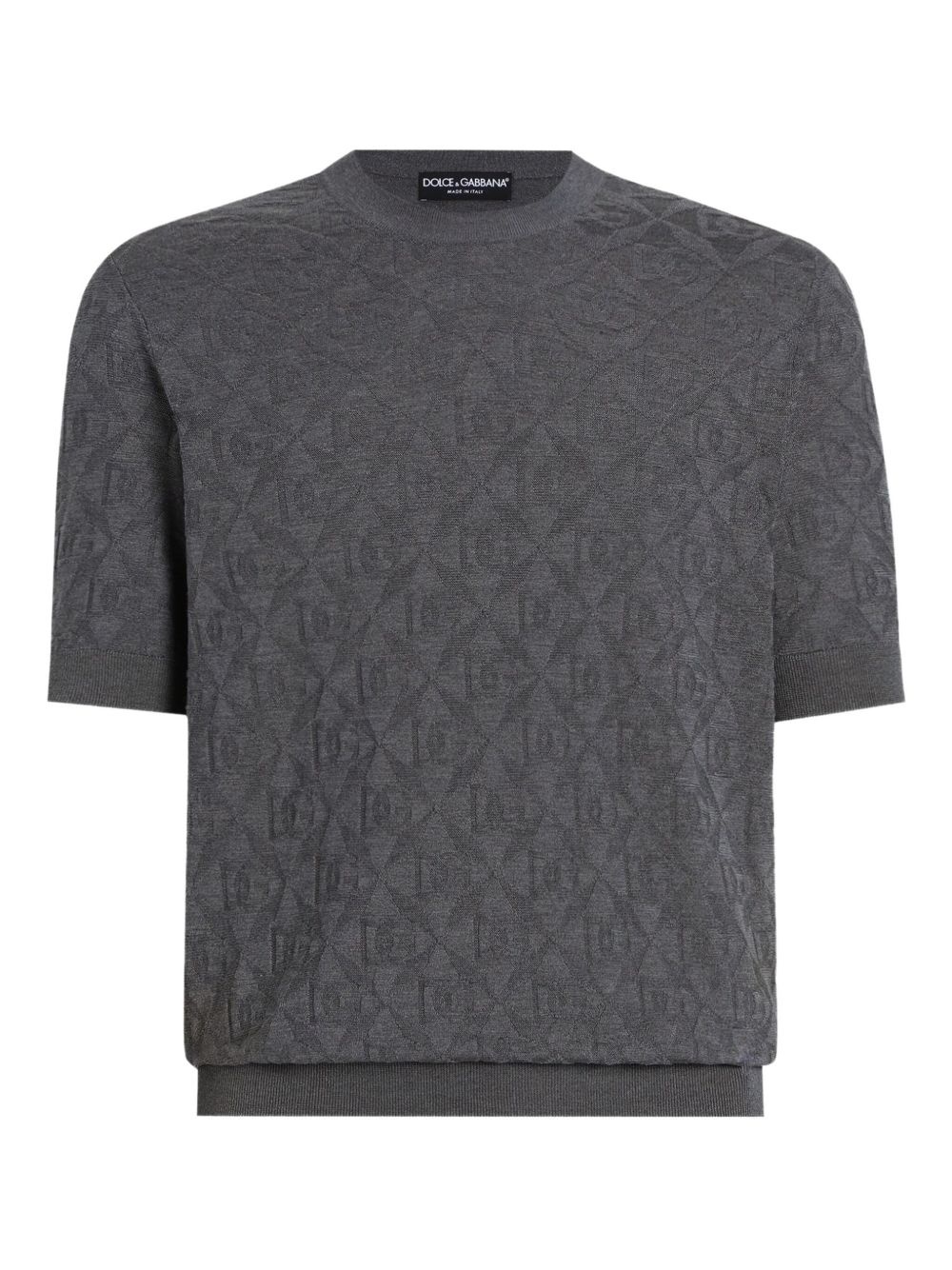 silk T-shirt Highlights - Dark grey - Jacquard logo motif - Round neck - Short sleeves - Straight hem Made in Italy Composition Silk 100%
