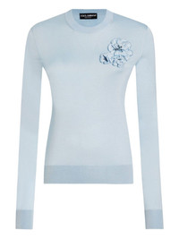 silk top Highlights - Pastel blue - Crew neck - Long sleeves - Ribbed cuffs and hem - Floral applique Made in Italy Composition Silk 100%