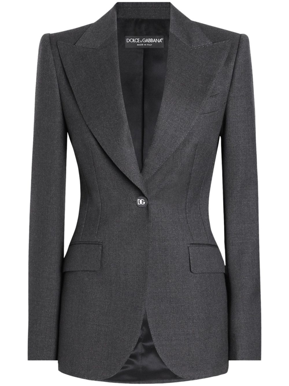 single-breasted blazer Highlights - Anthracite grey - Front button fastening - Chest welt pocket - Two side flap pockets - English rear vents Made in Italy Composition Outer: Virgin Wool 100% Lining: Silk 100%