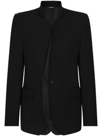 single-breasted blazer Highlights - Black - Virgin wool blend - Long sleeves - Front button fastening - Buttoned cuffs - Faux pocket detail Made in Italy Composition Outer: Virgin Wool 77%, Silk 16%, Polyester 4%, Spandex/Elastane 3% Lining: Silk 100%