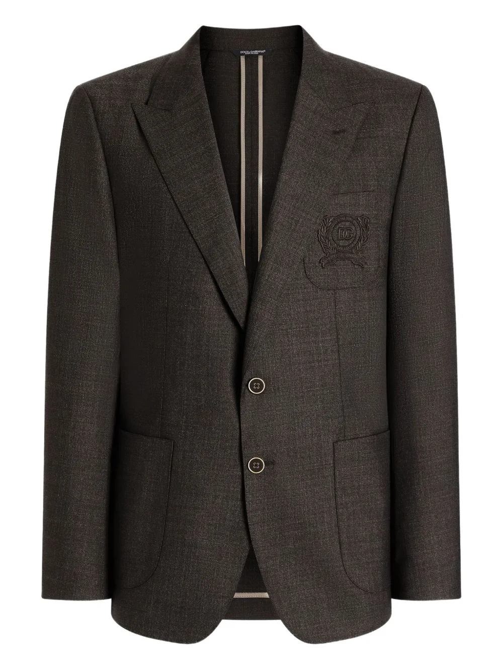 single-breasted blazer Highlights - Brown - Logo detail - Two-button fastening - Front pockets - Buttoned cuffs - Single-breasted Made in Italy Composition Outer: Virgin Wool 100% Lining: Viscose 67%, Polyester 33% Washing instructions Read Manufacturer Guidelines