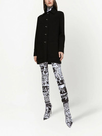 galalith-button crepe peacoat Highlights - Black - Front button fastening - Embossed gold-tone buttons - Classic collar - Long sleeves - Straight hem Made in Italy Composition Lining: Polyester 97%, Elastane 3% Outer: Rayon 60%, Virgin Wool 40%
