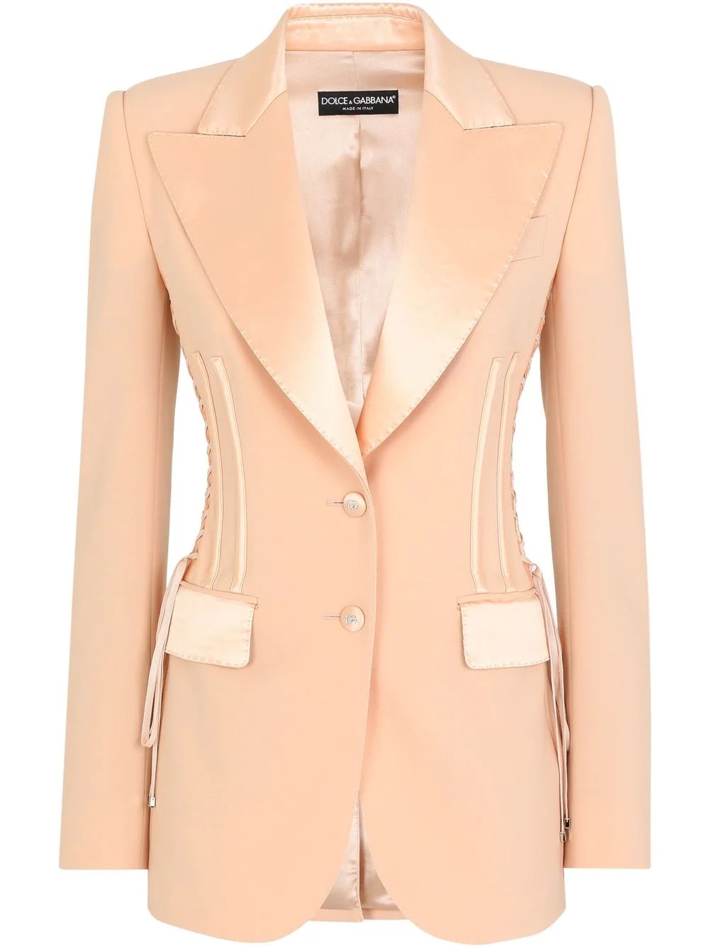 gabardine single-breasted blazer Highlights - Pink - Silk blend - Classic lapels - Long sleeves - Button fastening - Corset style - Two front flap pockets - Dart detailing Made in Italy Composition Polyester 47%, Virgin Wool 34%, Silk 16%, Elastane 3%