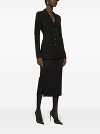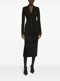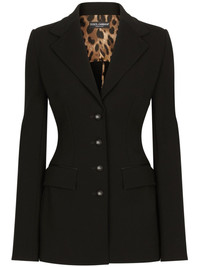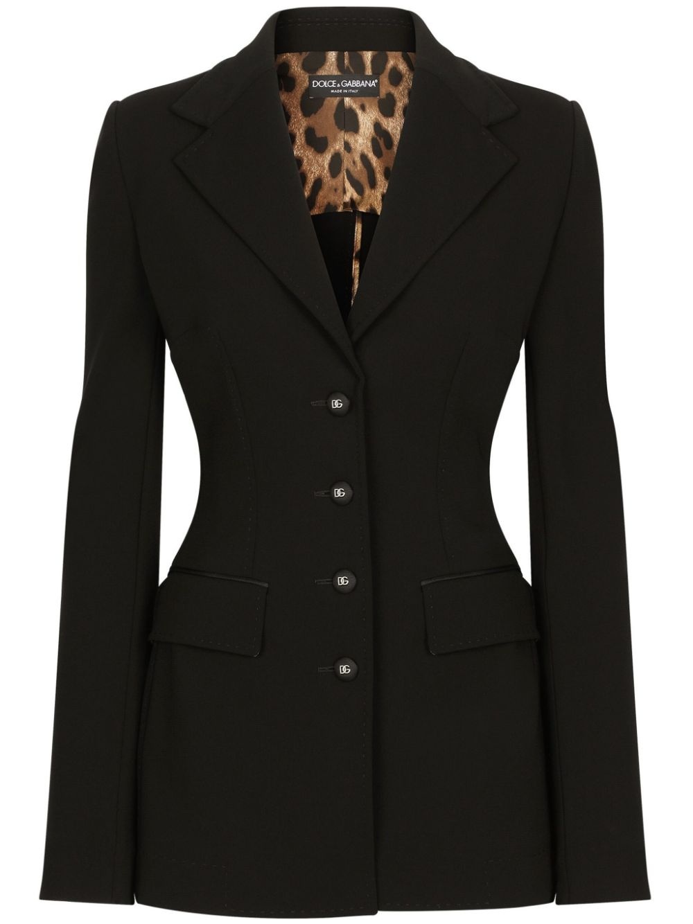single-breasted fitted-waistline blazer Highlights - Black - Fitted waistline - Logo-engraved buttons - Notched lapels - Front button fastening - Long sleeves - Buttoned cuffs - Two front flap pockets - Straight hem Made in Italy Composition Viscose 67%, Polyamide 28%, Elastane 4%, Silk 1% Washing instructions Read Manufacturer Guidelines