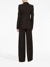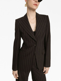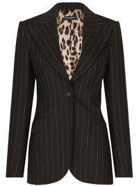 single-breasted striped blazer Highlights - Black - Virgin wool blend - Vertical stripe pattern - Wide peak lapels - Front button fastening - Long sleeves - Leopard print lining - Two side flap pockets Made in Italy Composition Outer: Virgin Wool 98%, Elastane 2% Lining: Polyester 97%, Elastane 3%