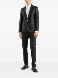 single-breasted suit Highlights - Black - Peak lapels - Front button fastening - Tailored trousers - Flap pockets Made in Italy Composition Viscose 100%, Silk 100% Washing instructions Read Manufacturer Guidelines