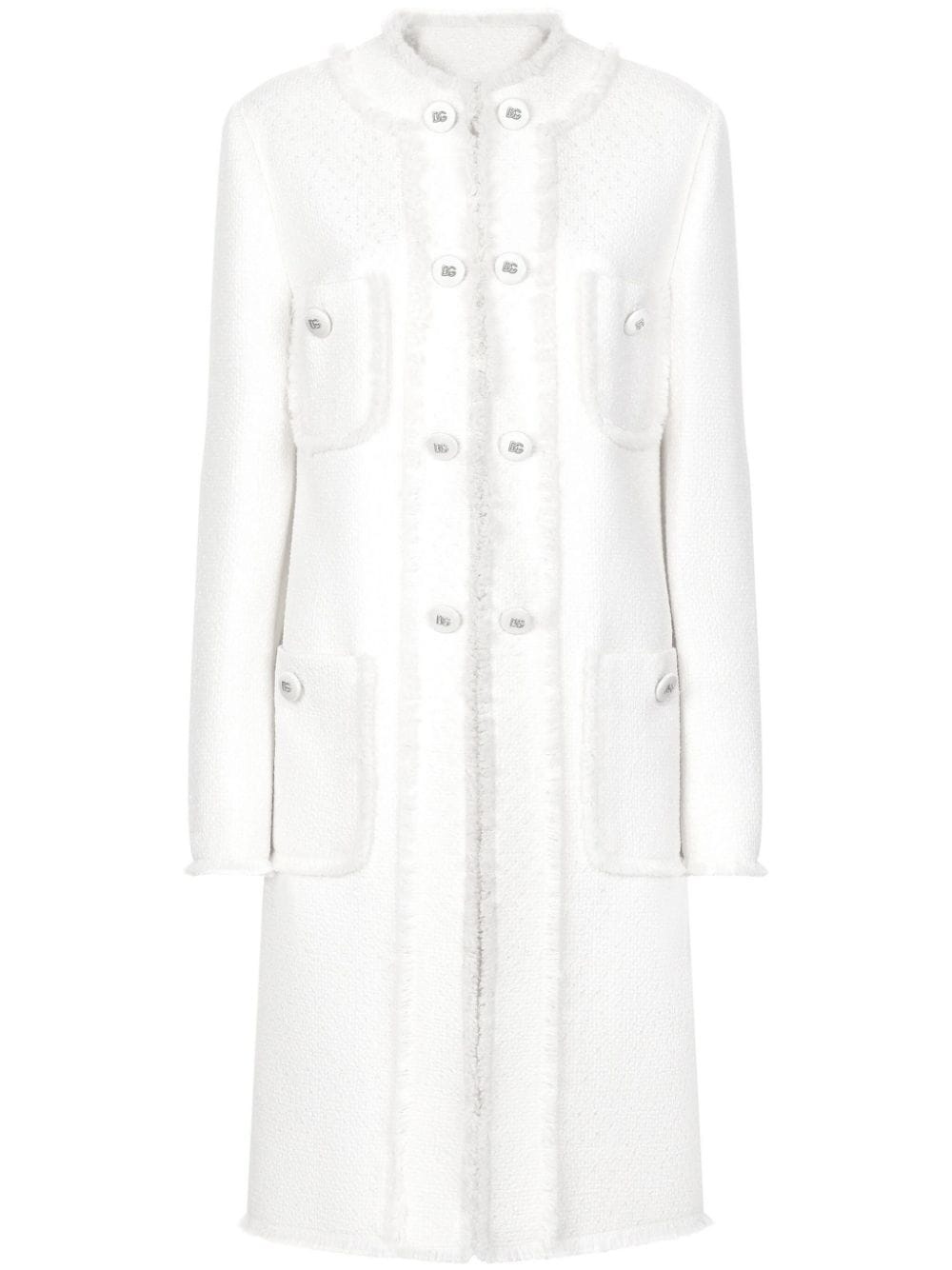 DNA single-breasted tweed coat Highlights - White - Tweed - Frayed edge - Crew neck - Concealed front fastening - Long sleeves - Four front patch pockets - Knee-length - Straight hem Made in Italy Composition Outer: Virgin Wool 67%, Viscose 27%, Polyamide 6% Lining: Silk 92%, Spandex/Elastane 8%