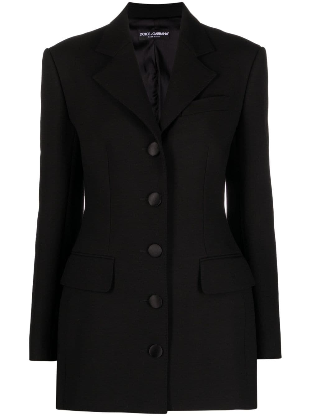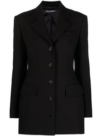 single-breasted virgin-wool blazer This black virgin-wool Dolce & Gabbana blazer is as timeless as it gets, save for the extended row of lustrous satin-covered buttons at the single-breasted front. Highlights - Black - Virgin wool blend - Fabric-covered buttons - Shoulder pads - Long sleeves - Buttoned cuffs - Notched lapels - Front button fastening - Chest welt pocket - Two front flap pockets - Central rear vent - Silk lining Made in Italy Composition Lining: Silk 92%, Elastane 8% Outer: Virgin Wool 90%, Polyamide 10% SIZE & FIT Model measurements Height 5 ft 10 in(1.79 m) Bust/Chest 31.49 in(80 cm) Hips 35.03 in(89 cm) Waist 23.62 in(60 cm) FittingInformation Designed for a slim fit that sits just away from the body offering a close yet comfortable fit The vented hem offers movement at the rear Made from a midweight non-stretch fabric, this piece offers minimal elasticity when worn This piece fits true to size – take your usual size Washing instructions Dry Clean Only
