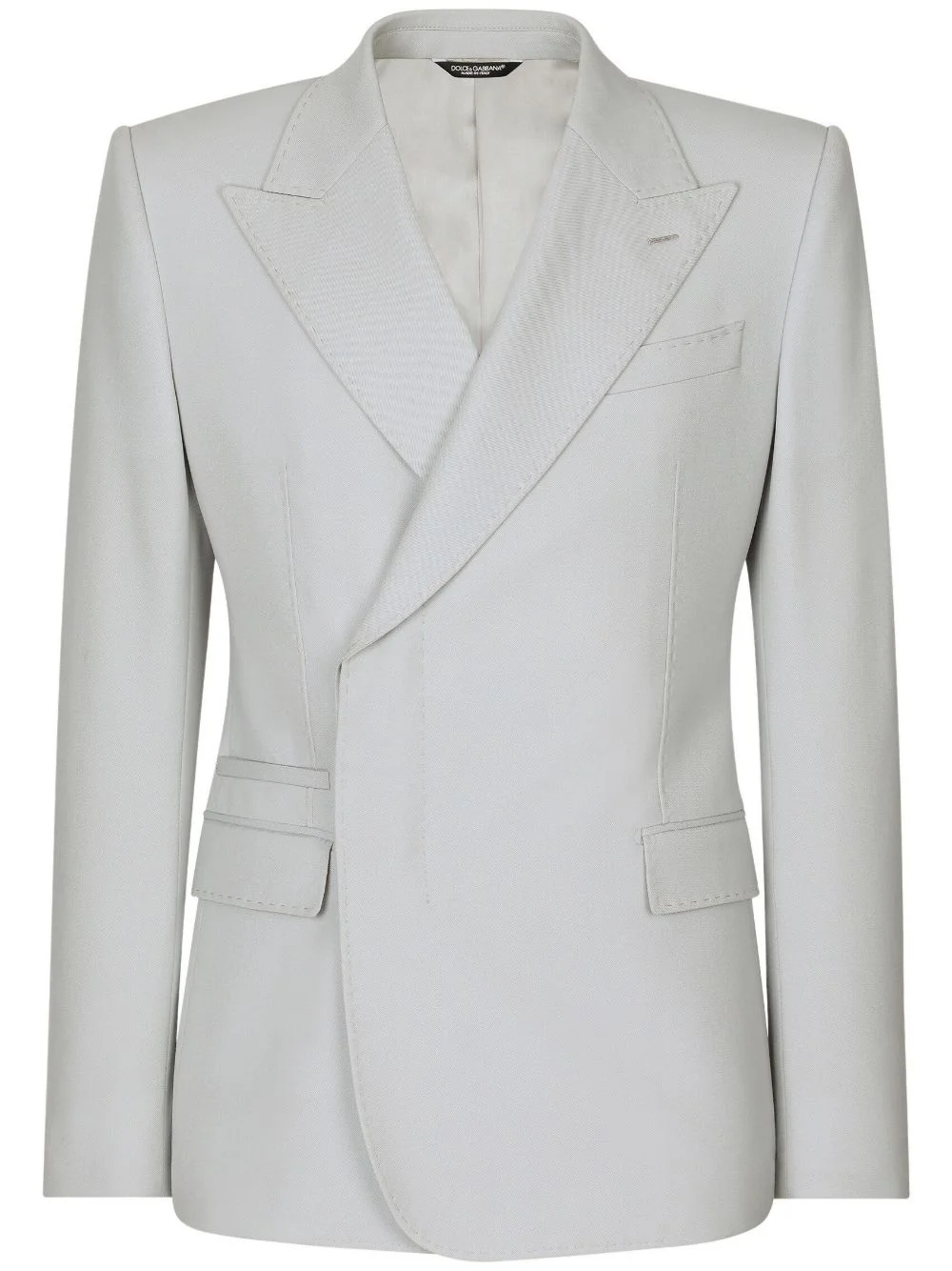 single-breasted wool blazer Highlights - Light grey - Stretch-wool - Silk lining - Peak lapels - Concealed front fastening - Two side flap pockets - Curved corners - Straight hem Made in Italy Composition Outer: Wool 97%, Spandex/Elastane 3% Lining: Silk 100% Washing instructions Read Manufacturer Guidelines