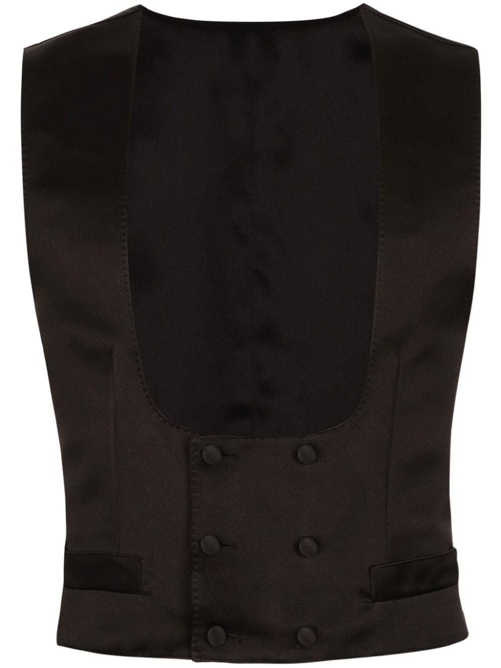 sleeveless silk jacket Highlights - Black - Silk - Satin finish - Double-breasted button fastening - Two side welt pockets - Sleeveless - Straight hem Made in Italy Composition Outer: Silk 100% Lining: Silk 100%