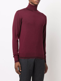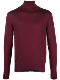 slim fit polo neck jumper burgundy virgin wool long sleeves polo collar fine knit ribbed hem Made in Italy Composition Virgin Wool 100% SIZE & FIT Model measurements Height 6 ft 2 in(1.89 m) Bust/Chest 35.43 in(90 cm) Hips 36.61 in(93 cm) Waist 28.74 in(73 cm) Washing instructions Dry Clean Only