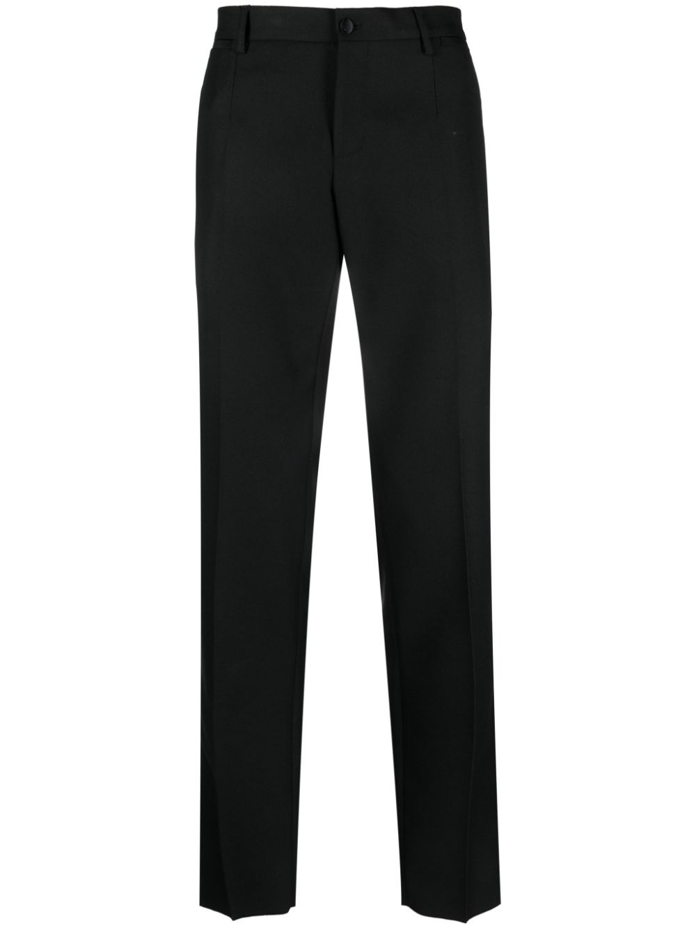 slim-leg trousers Dolce & Gabbana’s tailoring prowess is demonstrated with these black trousers. They’re cut to a classic slim-leg silhouette. Highlights - Black - Crepe texture - Tailored cut - Mid-rise - Belt loops - Concealed fly and button fastening - Two rear welt pockets - Slim cut Made In Italy Composition Polyester 65%, Viscose 27%, Silk 8% SIZE & FIT Model measurements Height 6 ft 2 in(1.87 m) Bust/Chest 36.22 in(92 cm) Hips 37 in(94 cm) Waist 27.95 in(71 cm) FittingInformation Designed for a slim fit, offering a comfortable fit that sits just away from the leg The unfinished hems allow for the length to be altered Made from a midweight non-stretch fabric This piece fits true to size – take your usual size