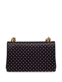 small DG Baroque satin crossbody bag Highlights - Black/white - Satin weave - Polka dot print - Logo print to the front - Sliding chain-link shoulder strap - Foldover top with magnetic fastening - Main compartment - Internal slip pocket - Internal logo plaque Made in Italy Composition Outer: Polyester 100%, Lambskin 100% SIZE & FIT Measurement HEIGHT 5.51 in(14 cm) WIDTH 9.05 in(23 cm)