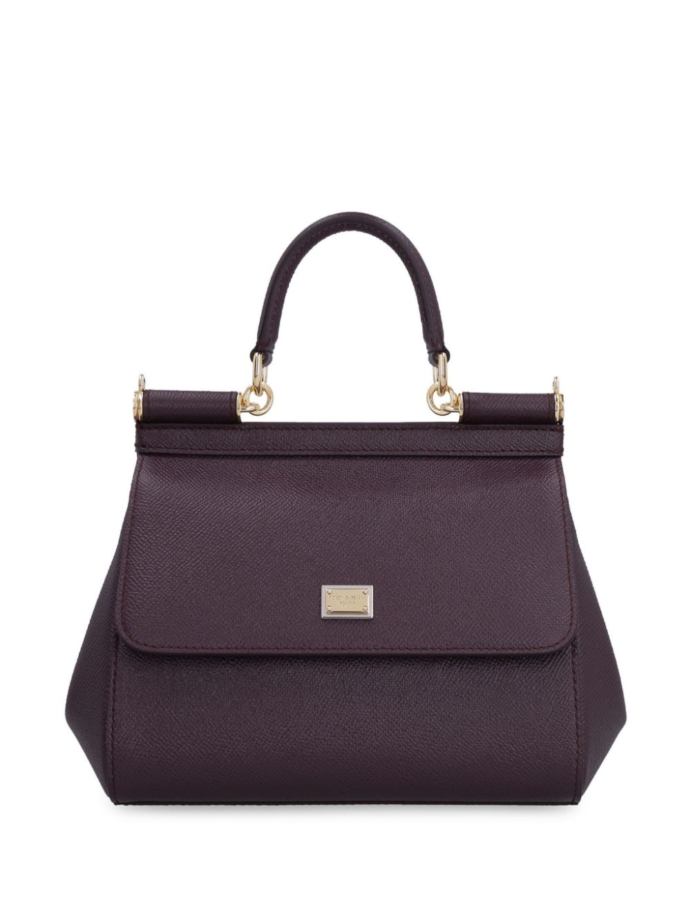 medium Sicily tote bag Highlights - Burgundy calf leather small sicily shoulder bag from dolce & gabbana featuring a square body, a front flap closure, a front logo plaque, a top handle, a detachable and adjustable shoulder strap, gold-tone hardware, a leopard print lining and an internal zipped pocket. Made in Italy Composition Outer: Calf Leather 100% SIZE & FIT Measurement WIDTH 7.87 in(20 cm) HEIGHT 6.29 in(16 cm) DEPTH 3.93 in(10 cm) HANDLE 3.14 in(8 cm) STRAP 46.85 in(119 cm)